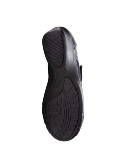 - Faux-leather outsole with rubber tread inserts for traction