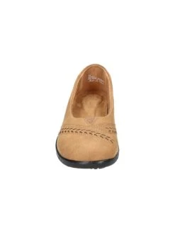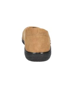 - Synthetic leather upper in a slip on shoe style with a round toe