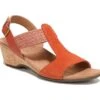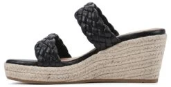- Faux leather upper in a wedge slide sandal style with an open toe