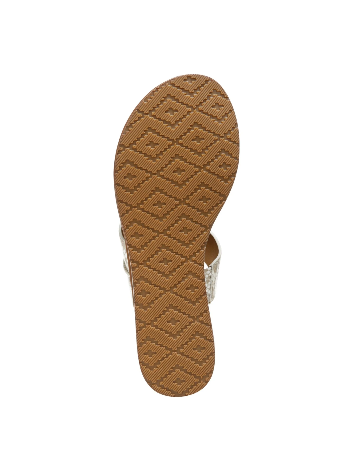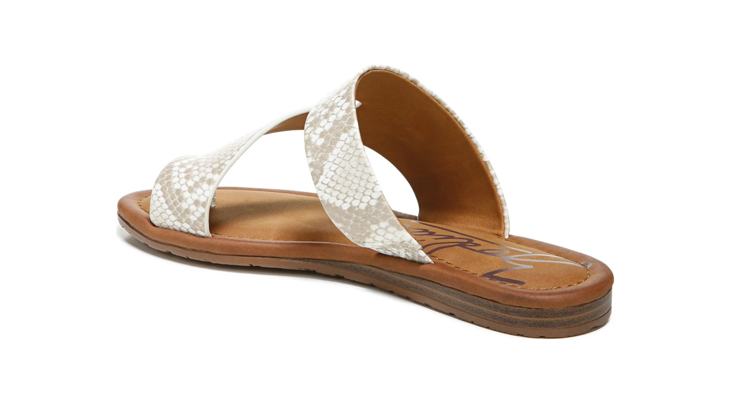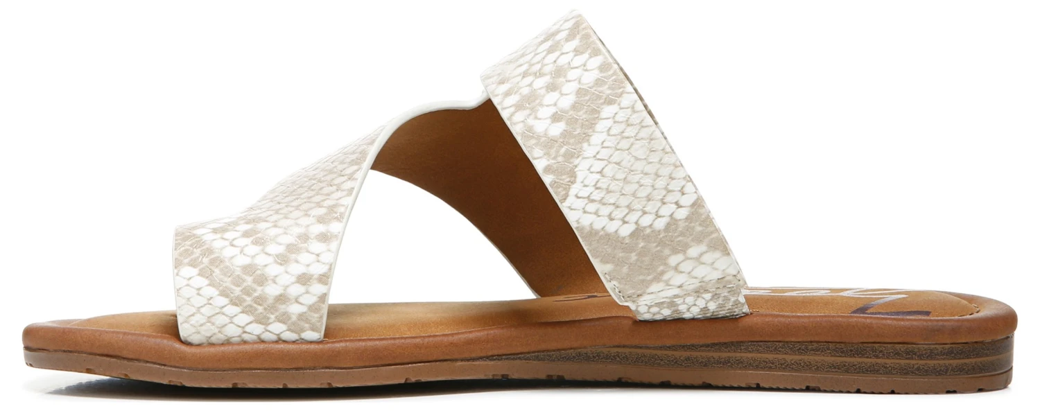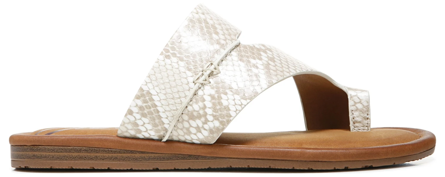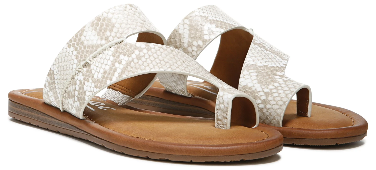 Bright idea. A playful toe-loop sandal with asymmetrical straps for all the looks you can imagine.