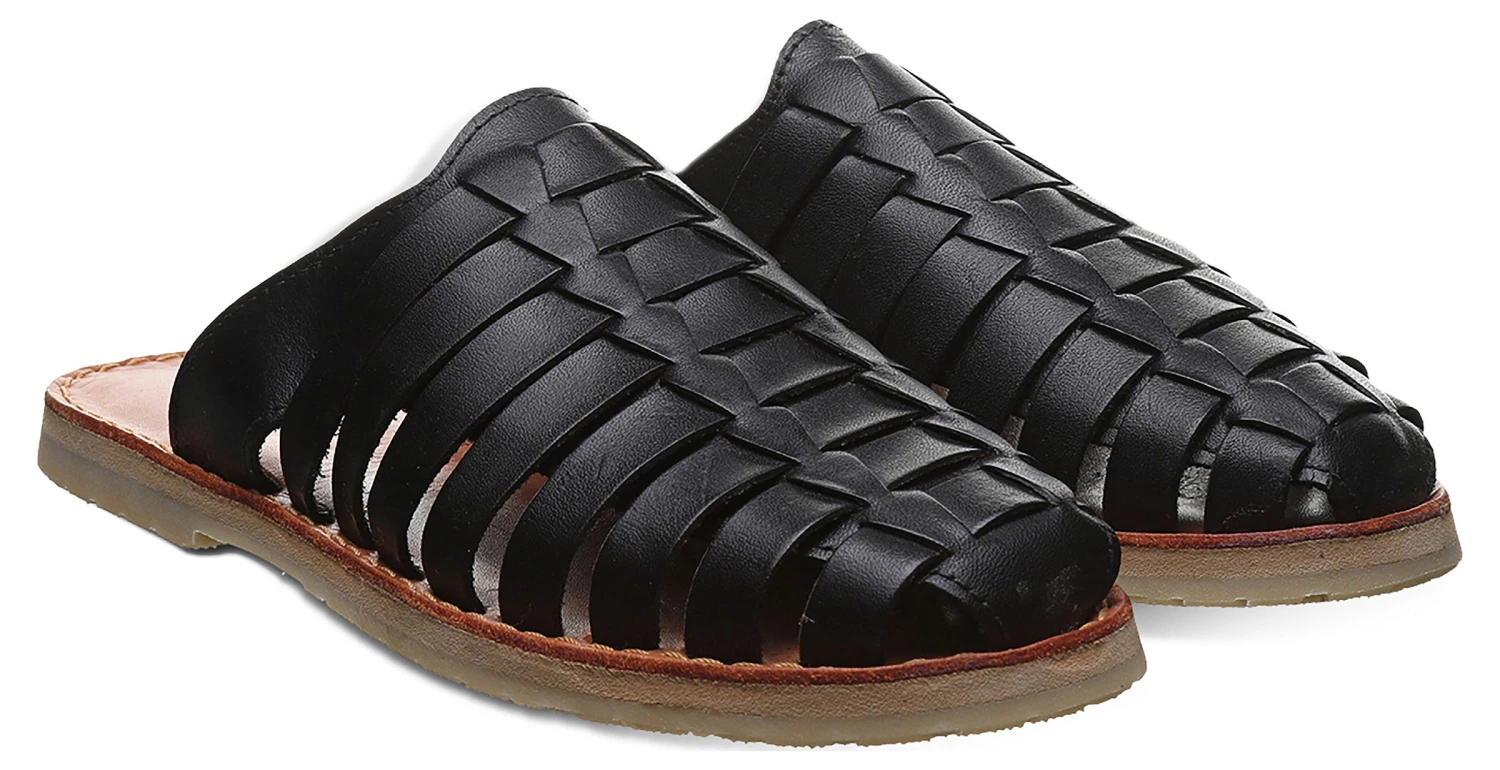 - Leather upper in a mule style with a round toe