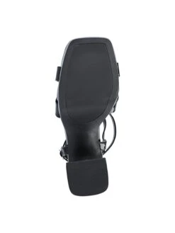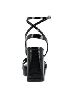 - Vegan leather upper in a platform dress sandal with an open square toe